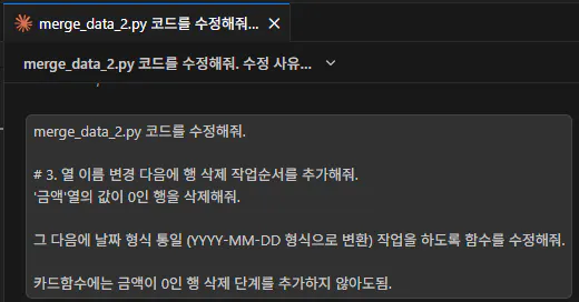 같은 방식으로 카드 엑셀 파일 변환 코드를 클로드코드에게 만들어달라고 했다.