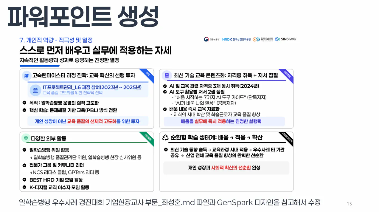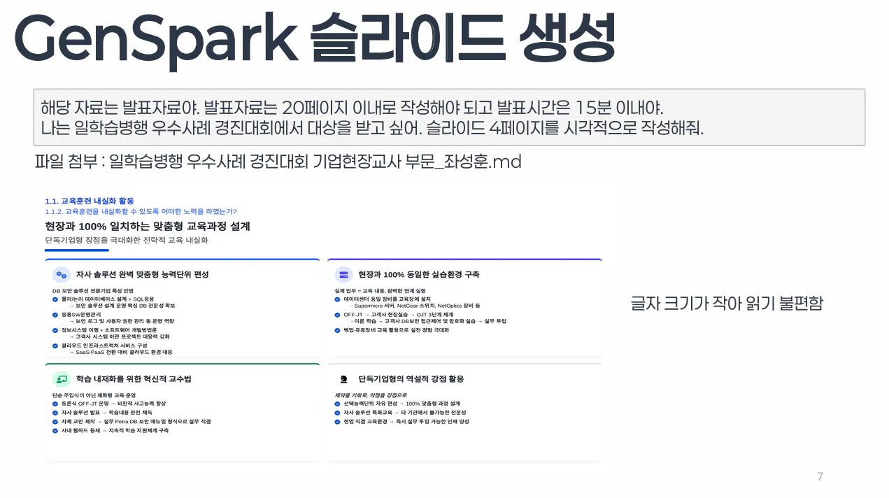 내 발표자료 비밀병기? 젠스파크로 만든 일학습병행 우수사례 경진대회 발표자료 작성하기