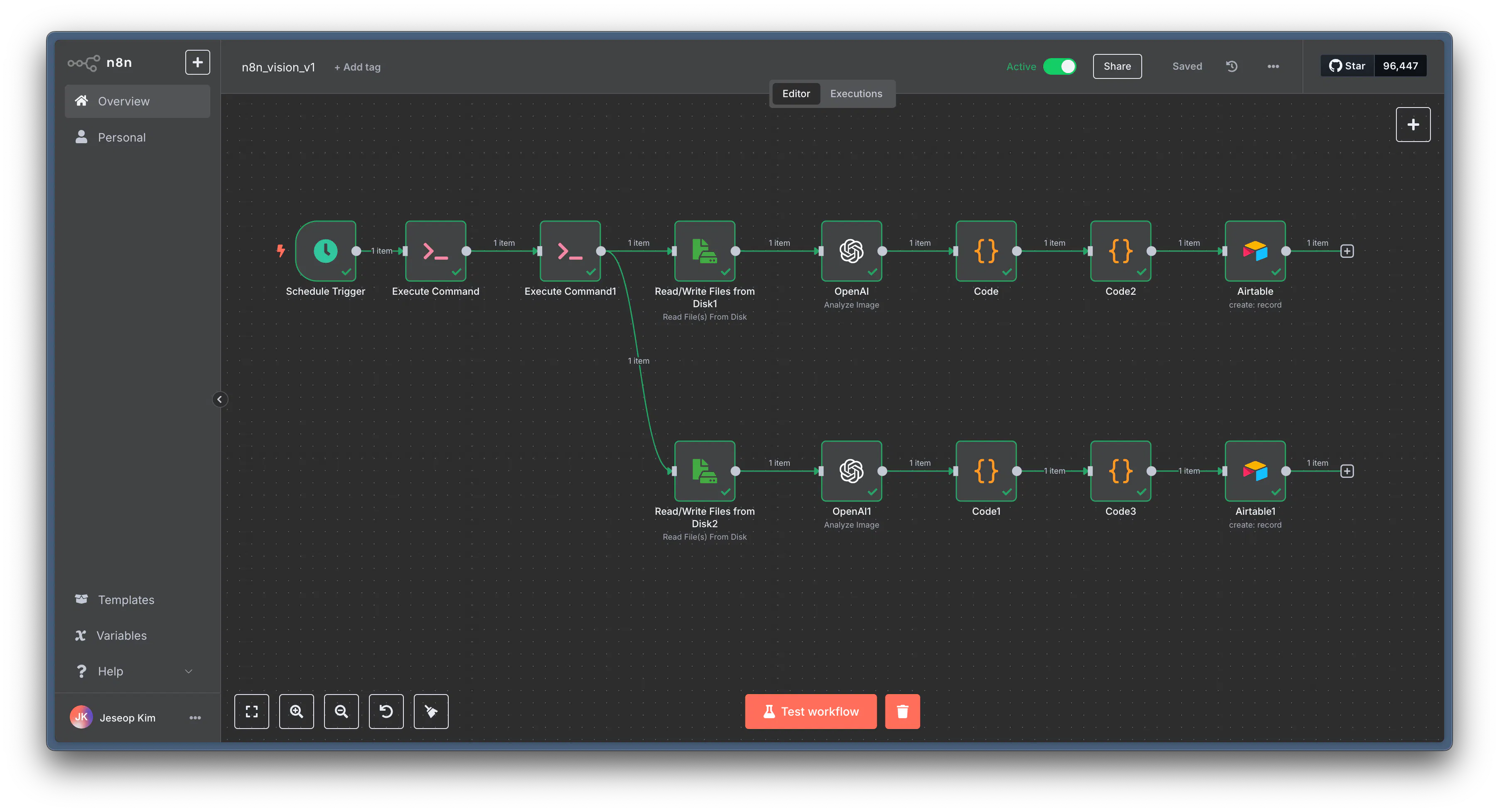 n8n 정말 좋네요. 틀리지만 않으면 칼같이 작동하고 빨라요. 에어테이블과 함께 작동도 너무 잘되네요.