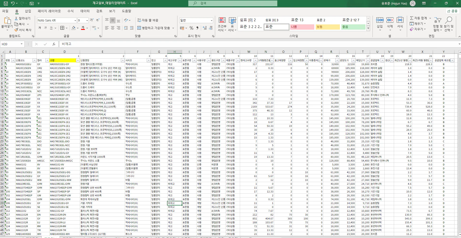 아래가 전체적인 재고 현황