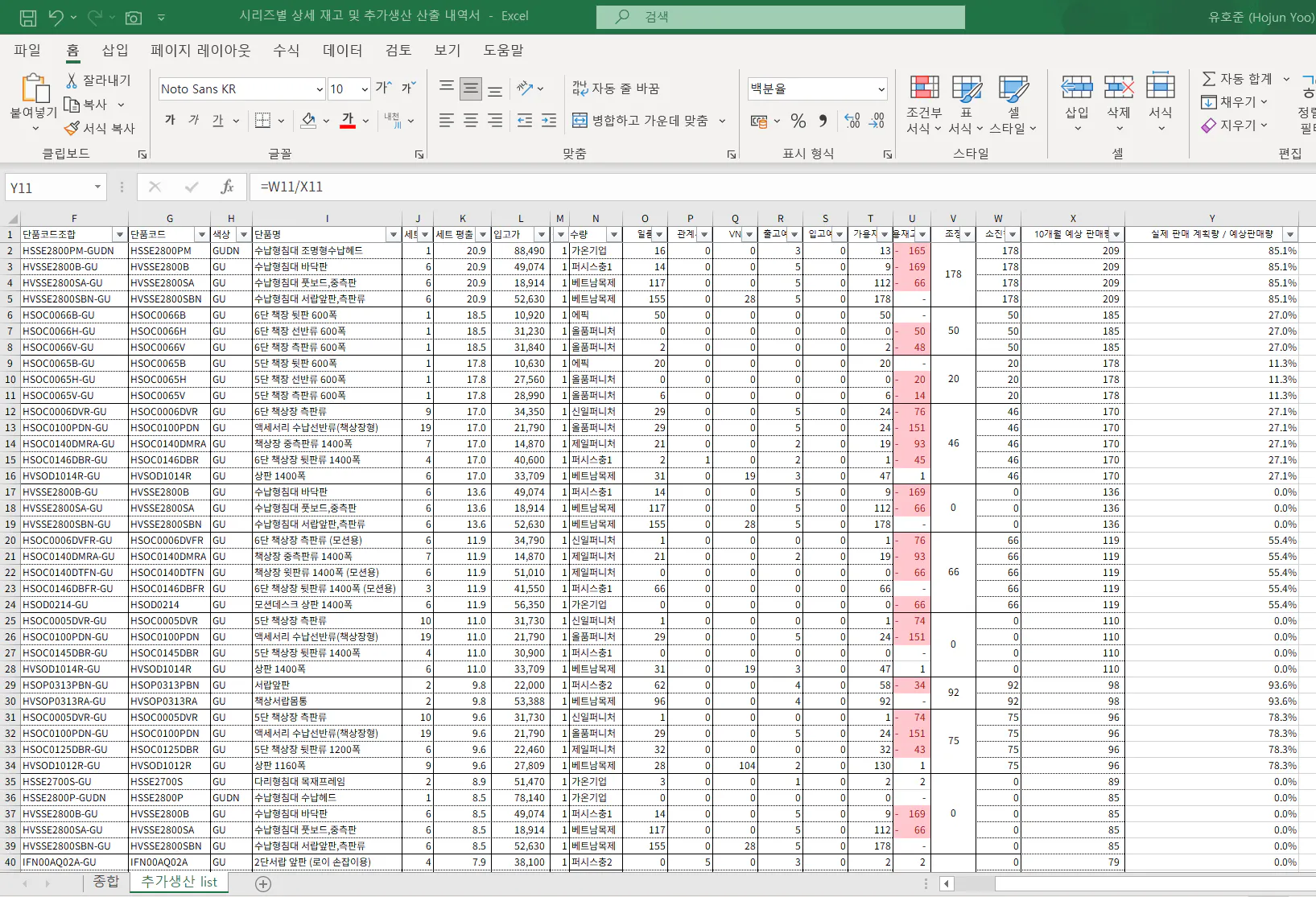 그렇게 리스트가 다 정리되면 재고소진을 위한 추가생산량을 산출함