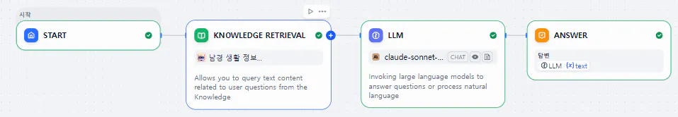 위와 같이 Dify에 지식을 생성하고, RAG 구성한 다음 LLM 모델만 연결하면 동작해서 만드는 것은 금방 만들 수 있어서 좋았습니다.