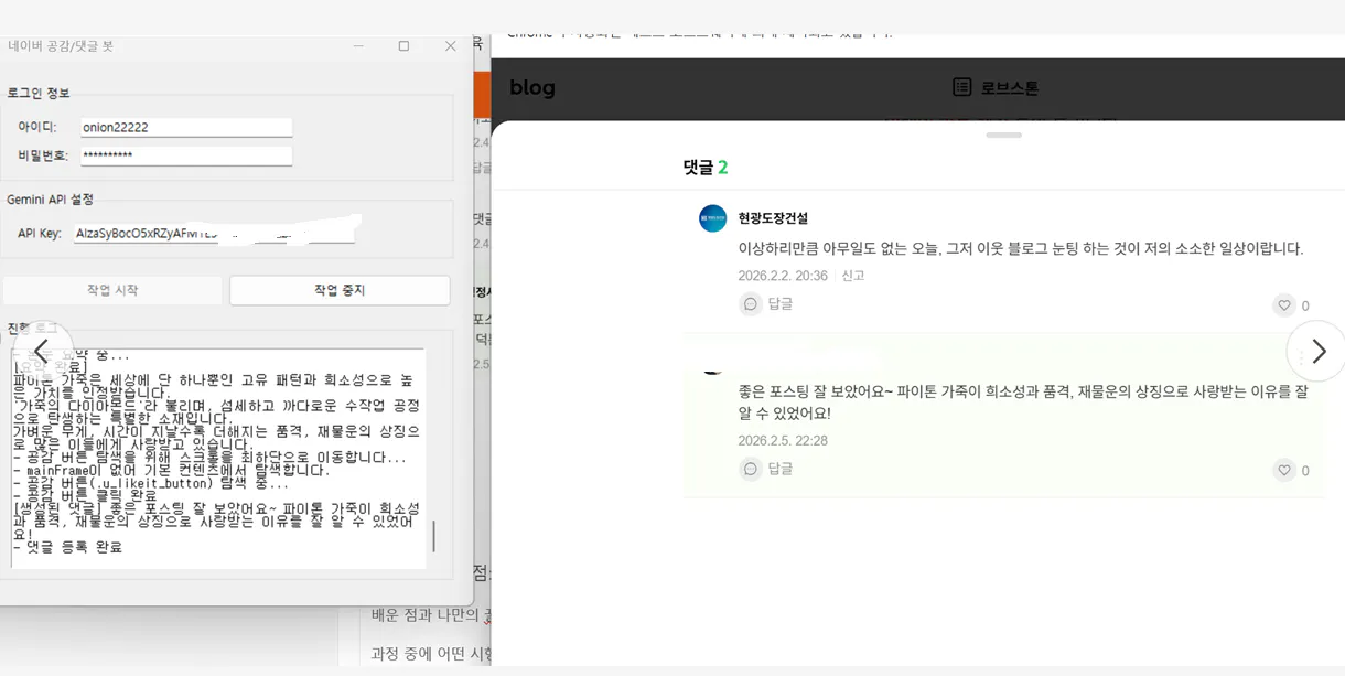 공감댓글 프로그램 속도가 아주 빠르고 글을 읽고 글에 맞는 댓글을 입력해 줍니다