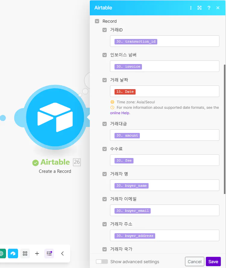 뽑아낸 내역을 에어테이블 필드별 매핑하기 (Airtable)