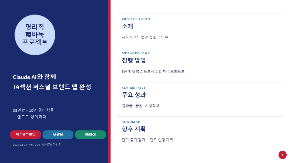 퍼스널 브랜드 맵 사례글 - Claude AI와 함께 명리학 19섹션 퍼스널 브랜드 맵 완성