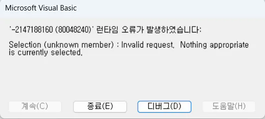 결국 해결방법은 조금 번거롭지만 VBA에서 코드를 하나하나 열어서 복분 하면서 물어보기 였습니다.