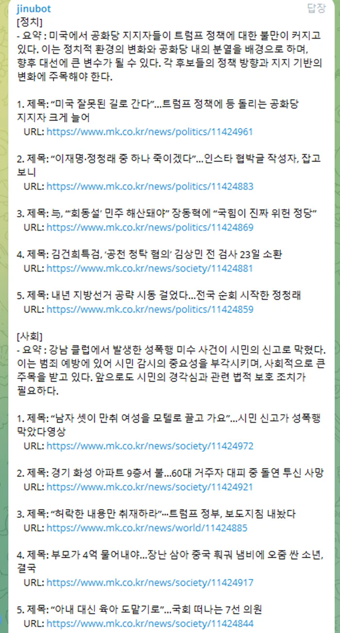 1. 매경 전체 기사 LLM Chain통해 텔레그램으로 받기