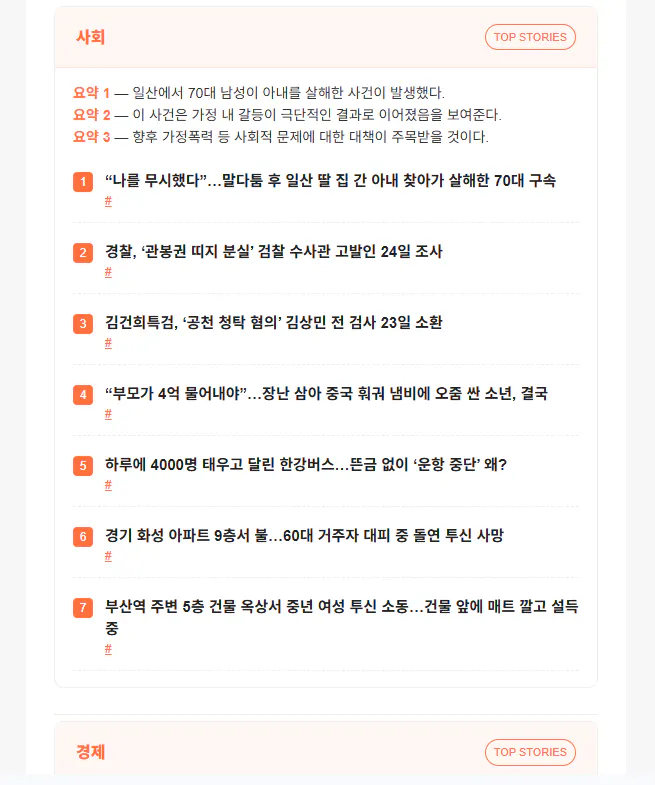 . json data를 주황색 뉴스레터 html로 변환하는 Script 생성