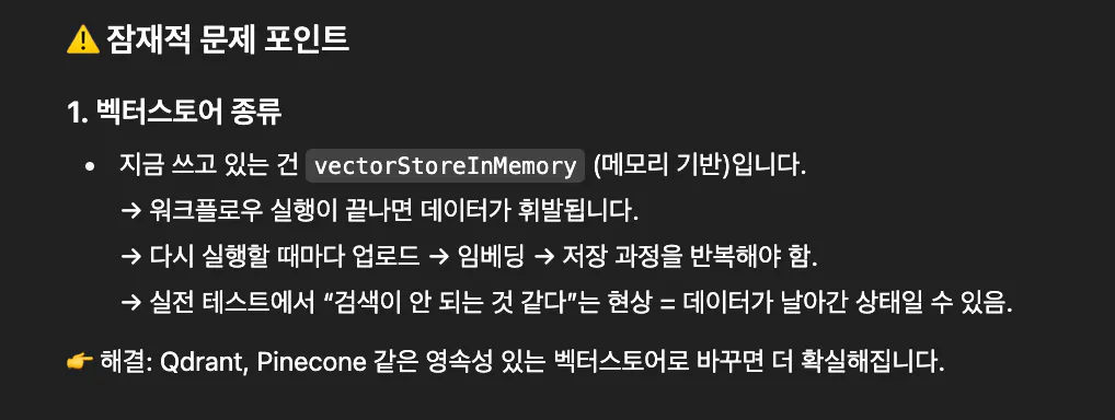 벡터스토어가 문제라고 합니다.