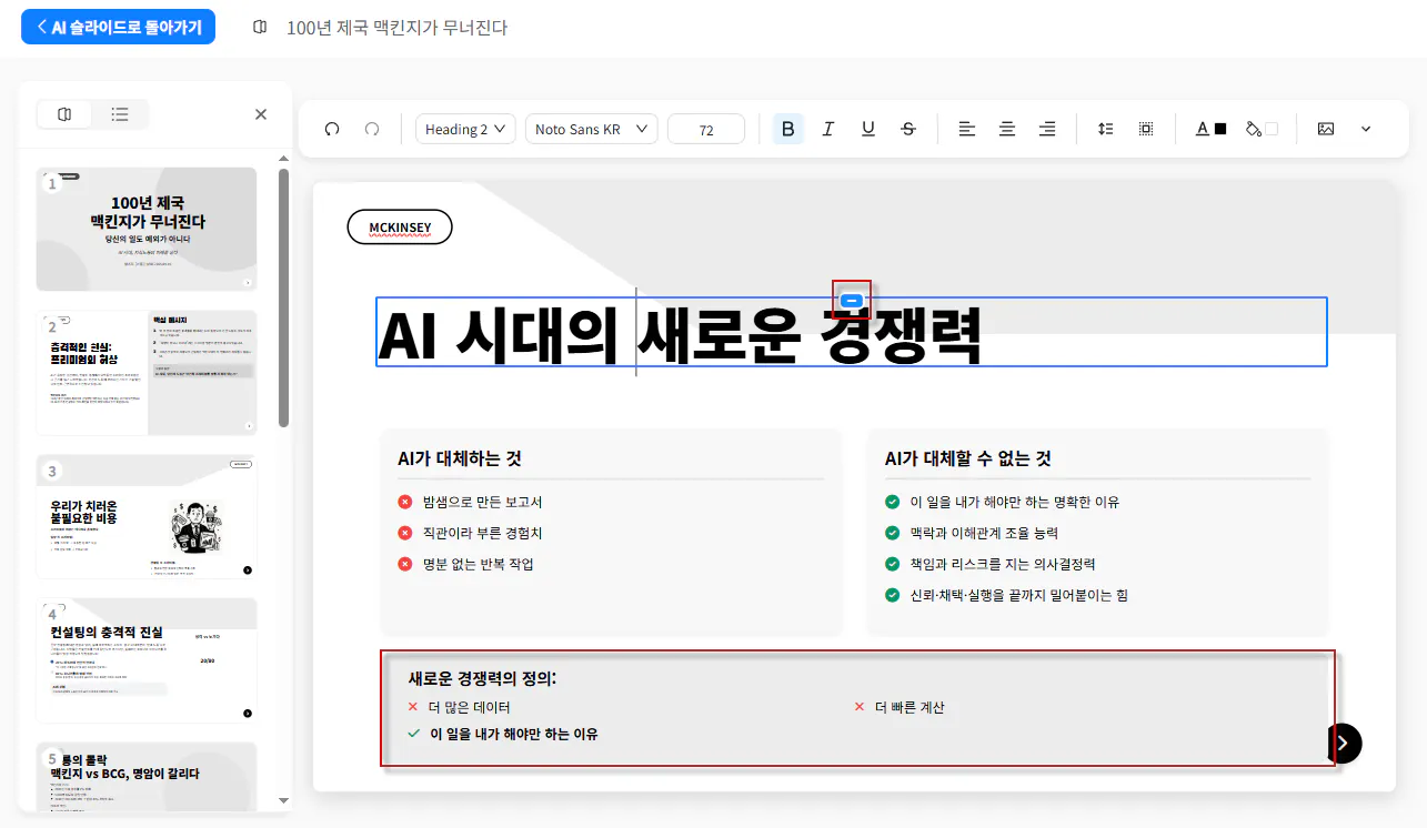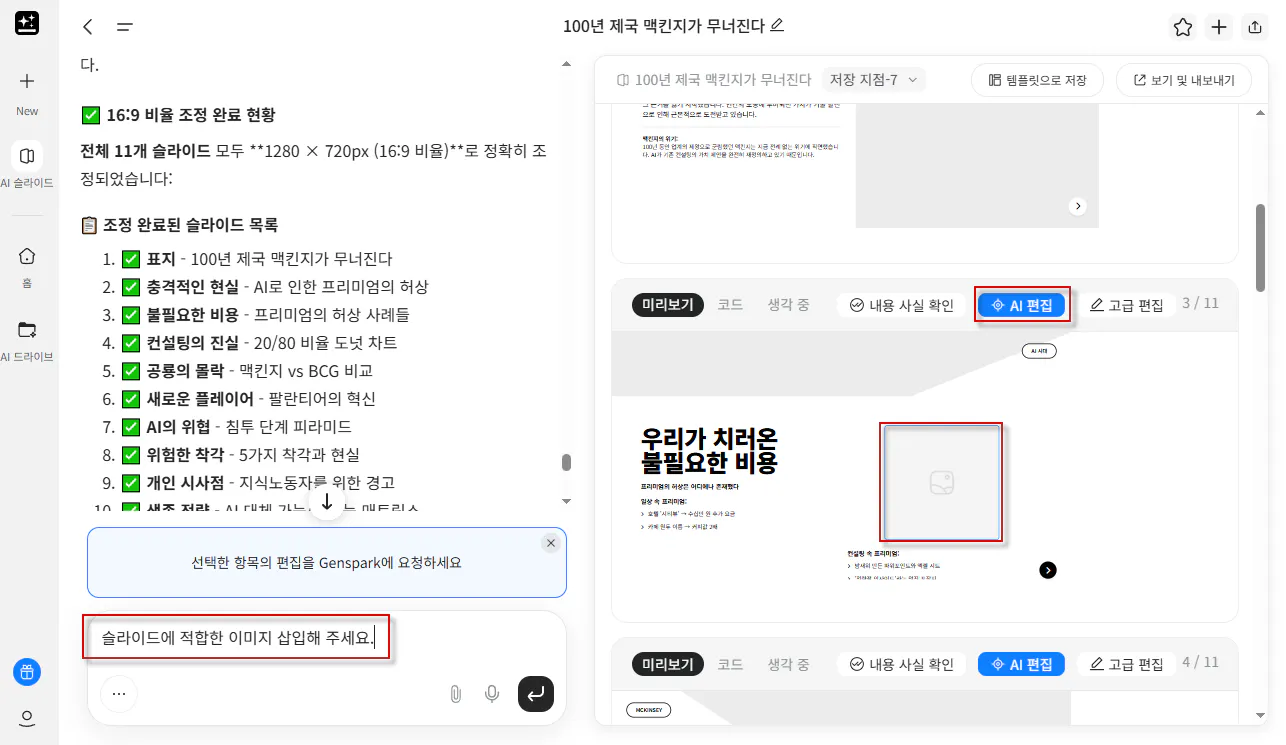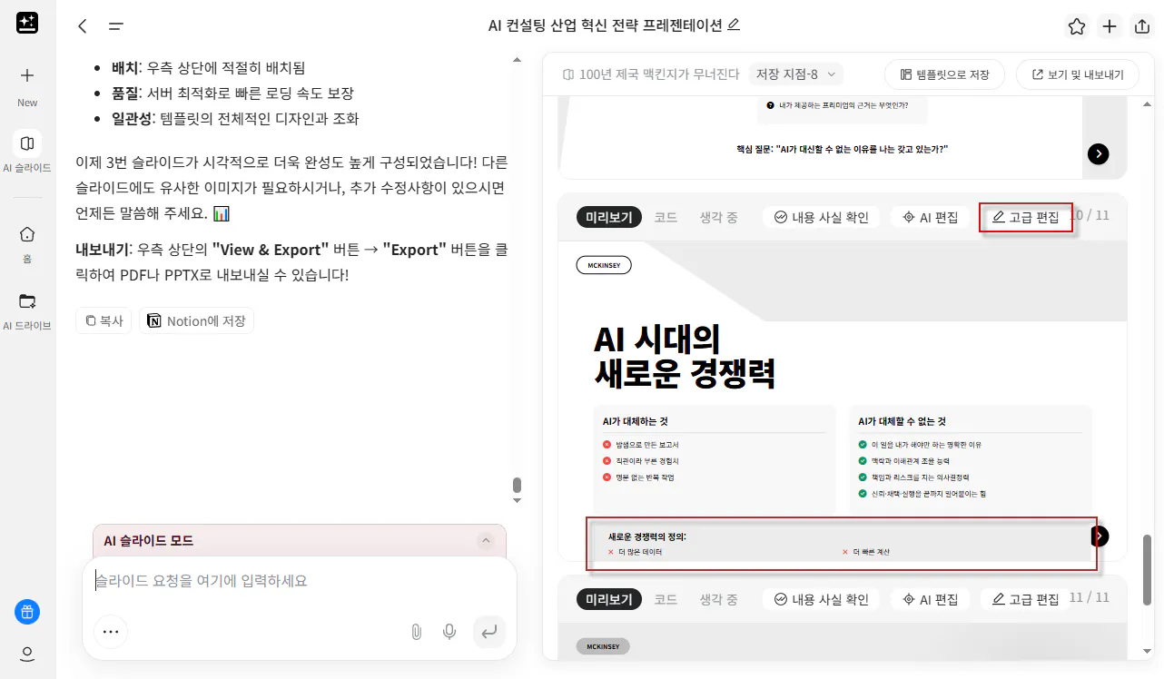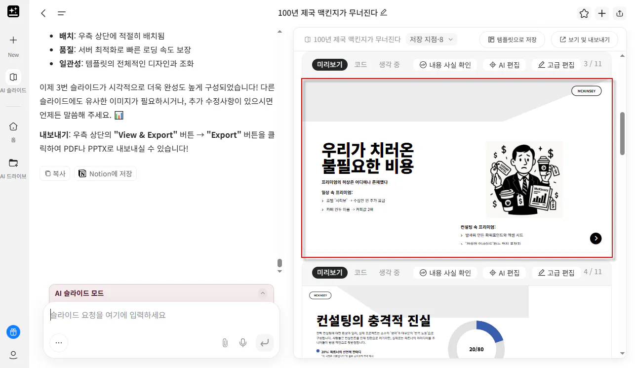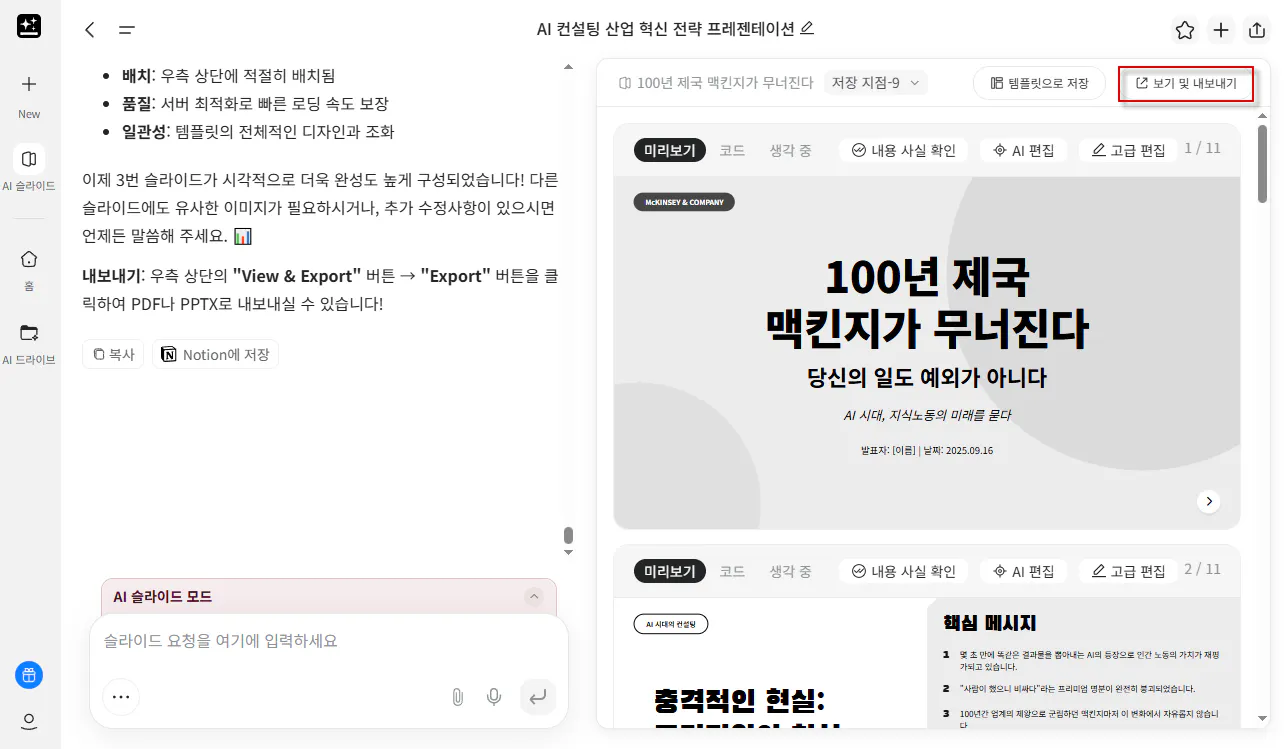 4. AI 채팅 결과를 활용하여 AI 슬라이드 작성하기