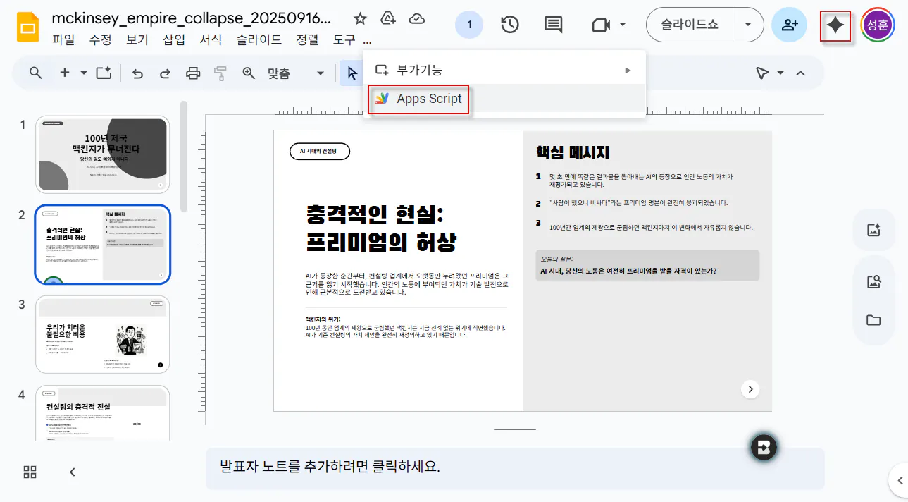 3. 첨부자료 분석하여 AI 슬라이드 작성하기