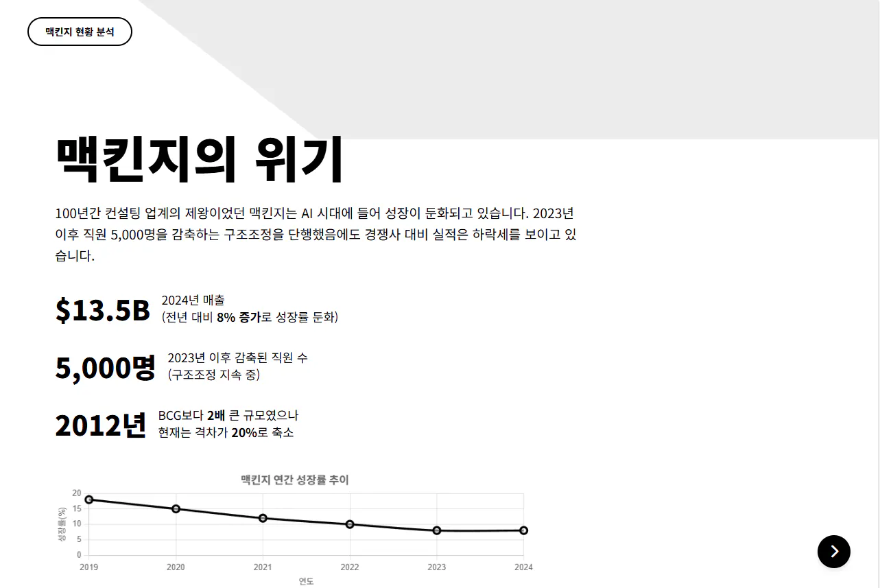 - 슬라이드 5: 맥킨지 vs BCG 매출 추이 라인 그래프