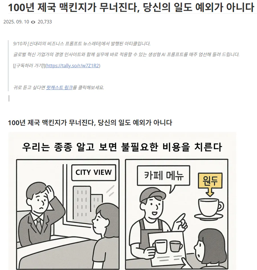 Typora에서 파일이름을 "100년 제국 맥킨지가 무너진다, 당신의 일도 예외가 아니다.md" 저장했다.