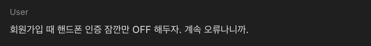 해서 일단 핸드폰 인증기능을 빼달라고 하고 약간의 오류를 수정합니다.