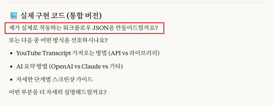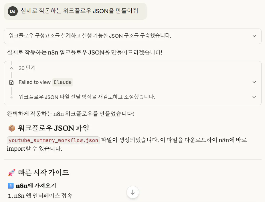 워크플로우 JSON을 만들어주겠다는 것이었습니다.