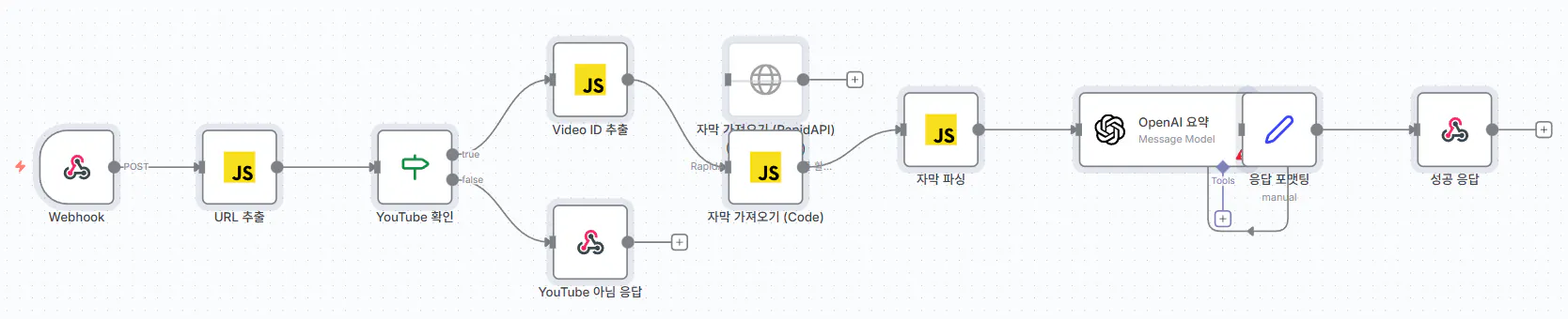 현재 Telegram 번역기와 YouTube/Web 요약 기능이 n8n에서 잘 돌아가고 있어요.