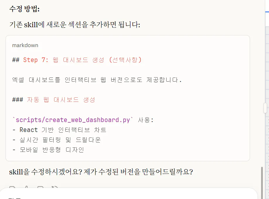 skill을 수정하면 된다고 알려줍니다.