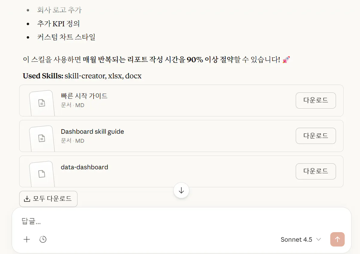 Claude skills가 무엇인지 해 보면서 감을 확실히 잡았습니다.