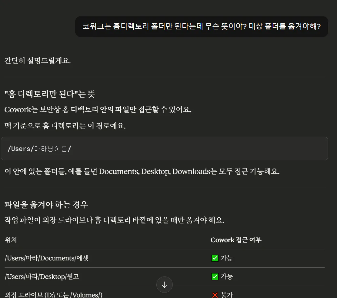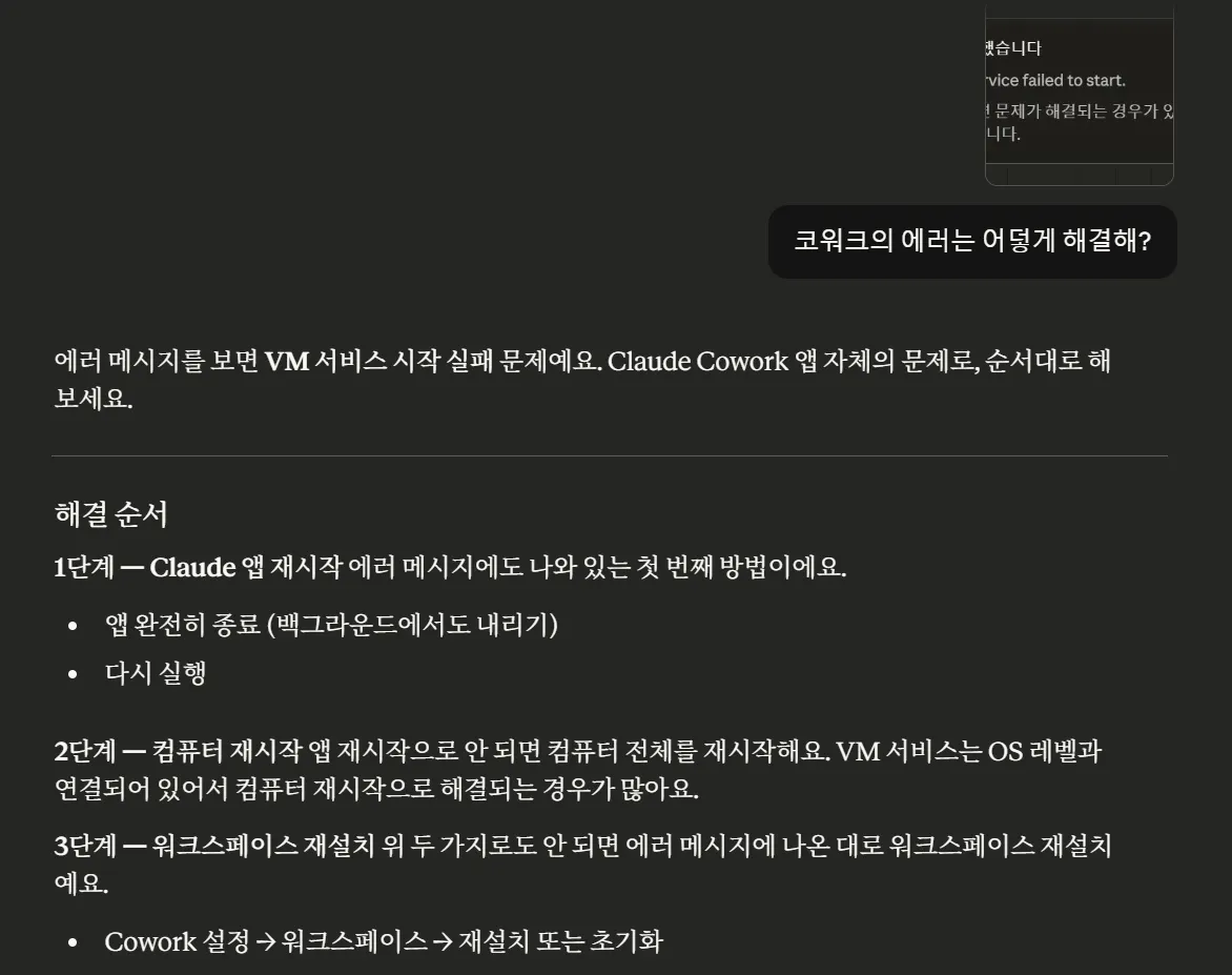 채팅에서 클로드는 하던 일이나 하지 코웍을 쓸 이유가 없다고 합니다.