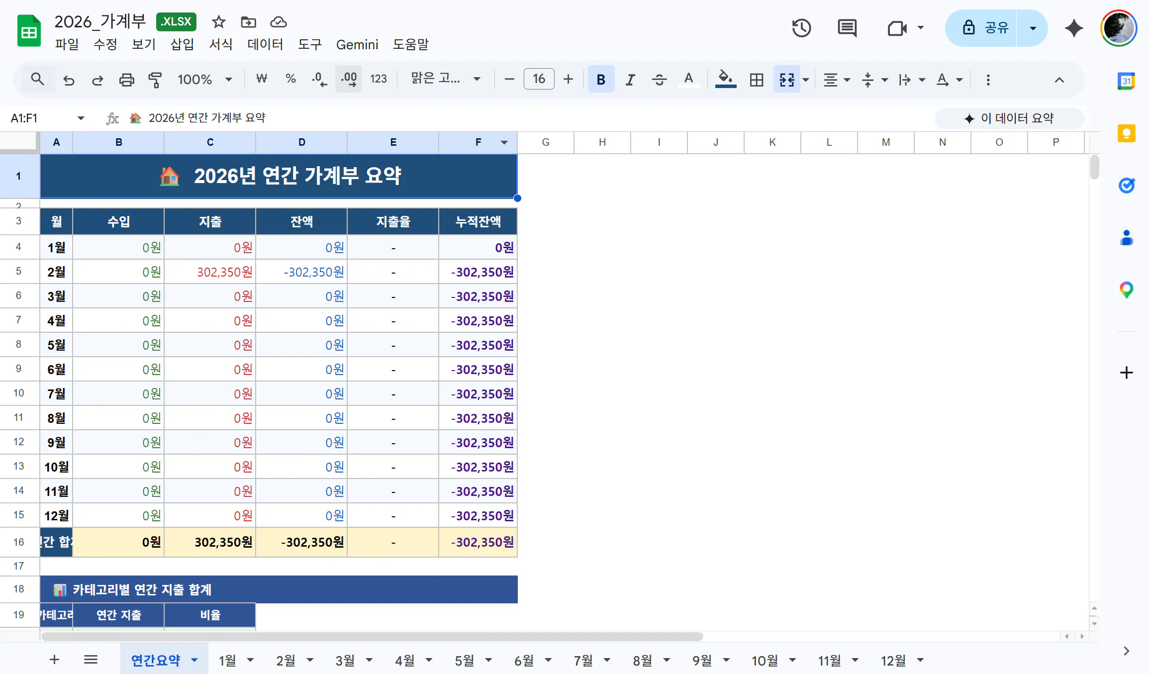 이 영수증 엑셀을 기반으로 가계부를 만들어달라고 했습니다.