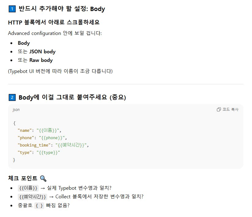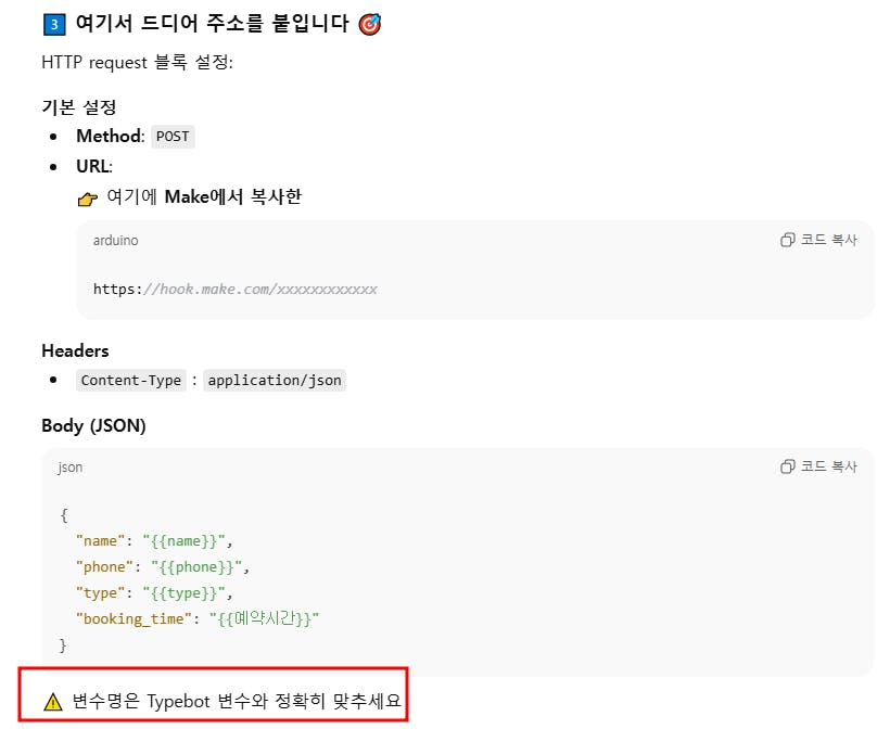 👉 Typebot의 HTTP request 블록에 붙여야 합니다.)