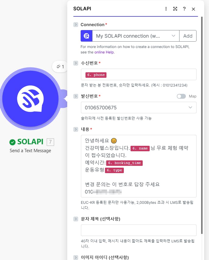 Typebot -헬스장 예약 내용을 문자 발송하는 과정을 make로 연결
