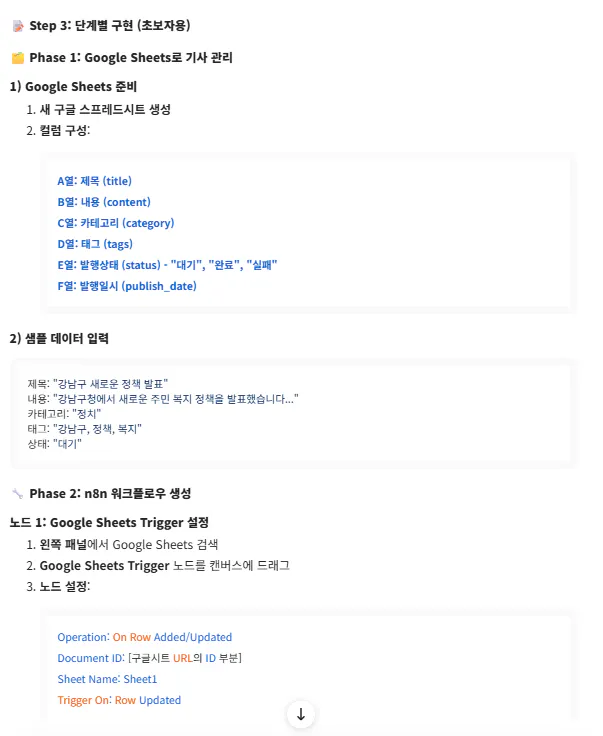 강남일보 자동 기사 발행하는 워크플로우를 만들고 자동 구현해내고 싶은데