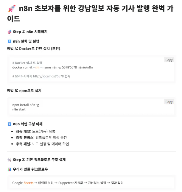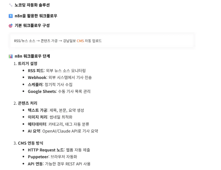 해당 사이트(강남일보)에 어드민으로 해당 기사를 자동으로 발행하는 시스템을 개발하고 싶어 노코딩으로 n8n이나 Make를 가지고 자동화 워크플로우를 만드는 방법이 있을까?