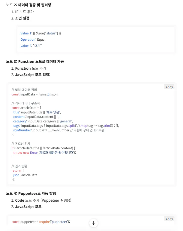(하지만 제가 n8n경험이 없기 때문에 따라가기가 어려웠고 그래서 추가 요청을 하였습니다)