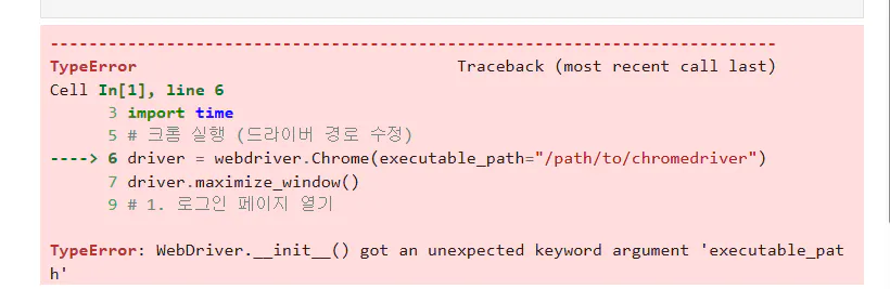 # 1. 크롬드라이버 실행 (경로 수정 필수)