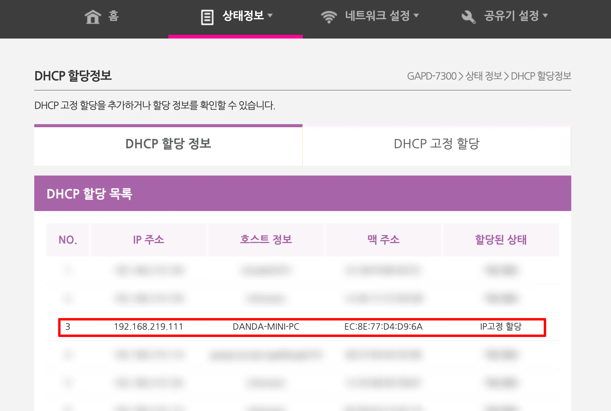 공유기가 집 안 기기들에게 할당하는 로컬 주소. 외부에서 직접 접근 불가
