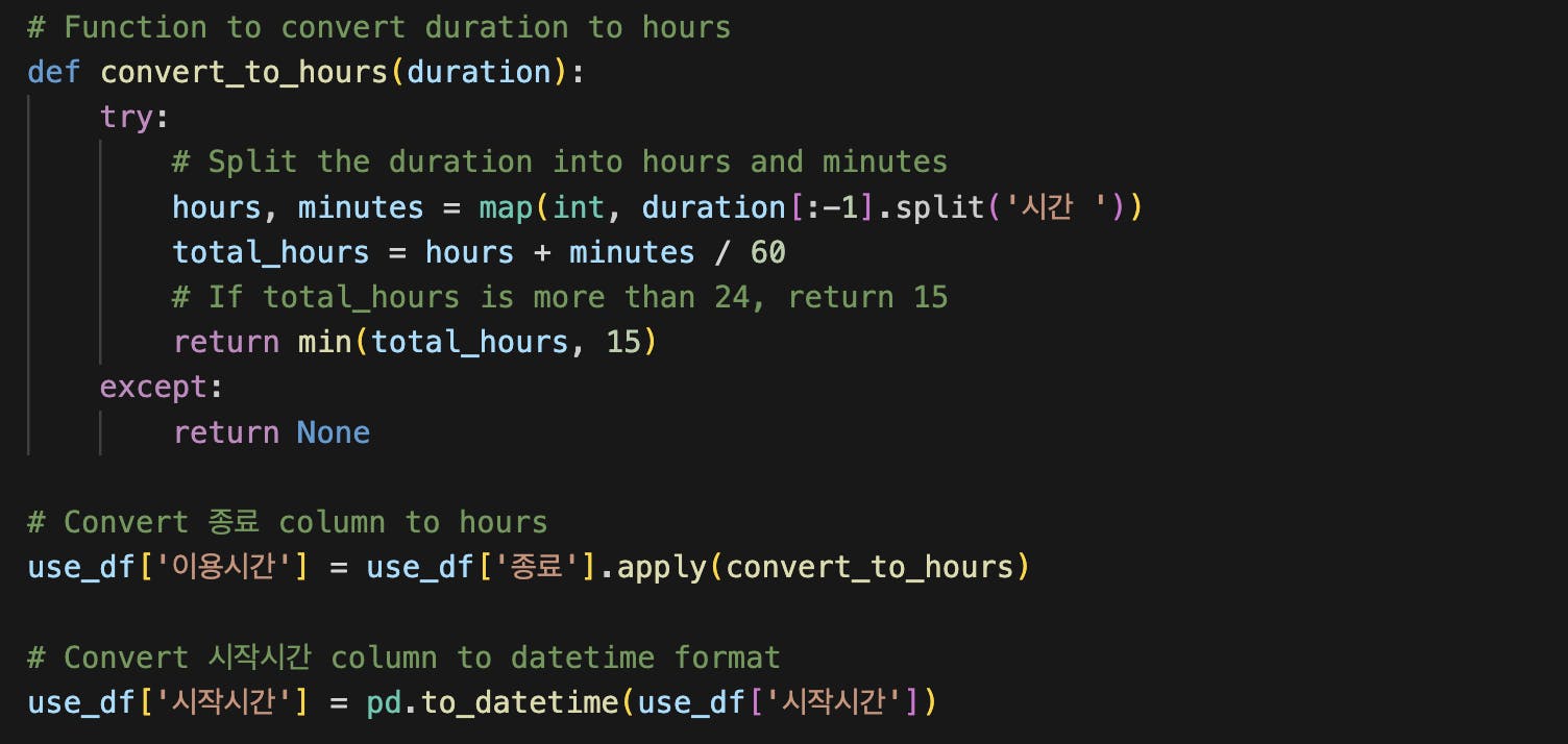 이용 데이터에서 [종료] 컬럼의 ‘6시간21분’ 텍스트 형식을 시간으로 바꾸는 더 재밌는 컴퓨팅 사고 작업도 있었지만,