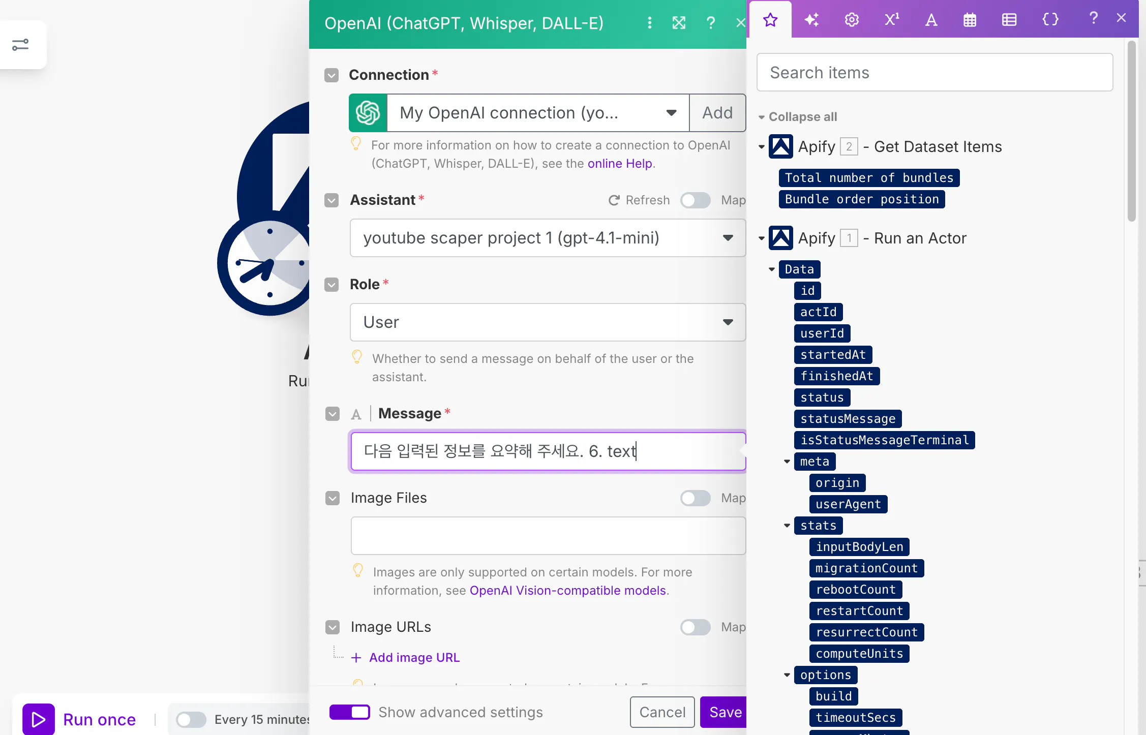 Make를 통해 유튜브 내용을 요약해 주는 링크 만들기를 위한 사전 설정 및 시나리오 만들기 test를 해본 기록입니다.