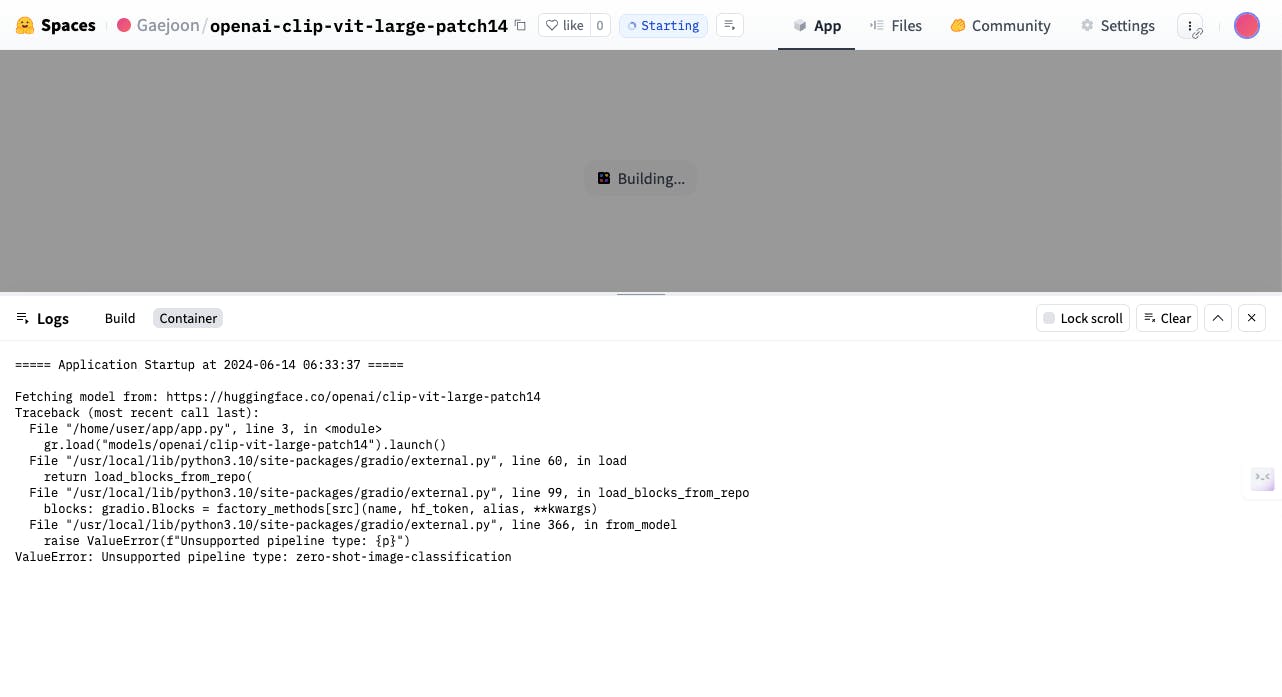 https://huggingface.co/spaces/Gaejoon/openai-clip-vit-base-patch32?logs=container
