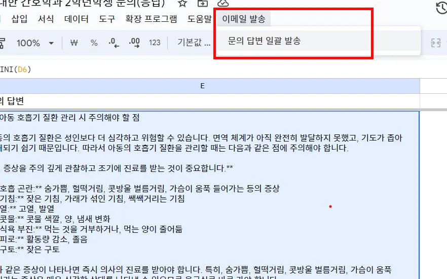 처음 접하는 과목과 친해지기: 앱스스크립트로 아동간호학 질문 자동 해결 1탄