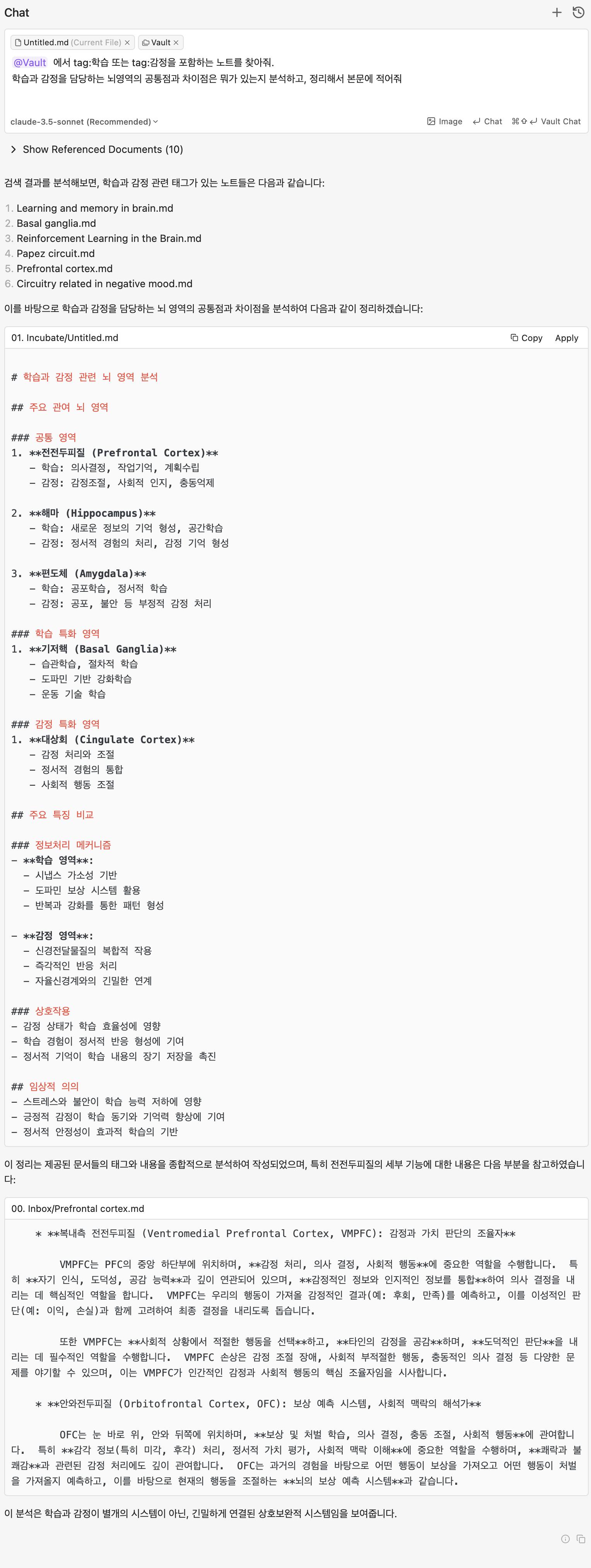 처음엔 Smart composer를 통해서 진행하였으나, 길고 상세한 답변을 원해서 Gemini-2.0-flash-thinking 모델을 Templater를 통해 반복질문과 내용정리를 시키고, 노트를 만들었습니다. 이후 Graph view와 Smart composer를 이용하여 내용을 확인하였습니다.