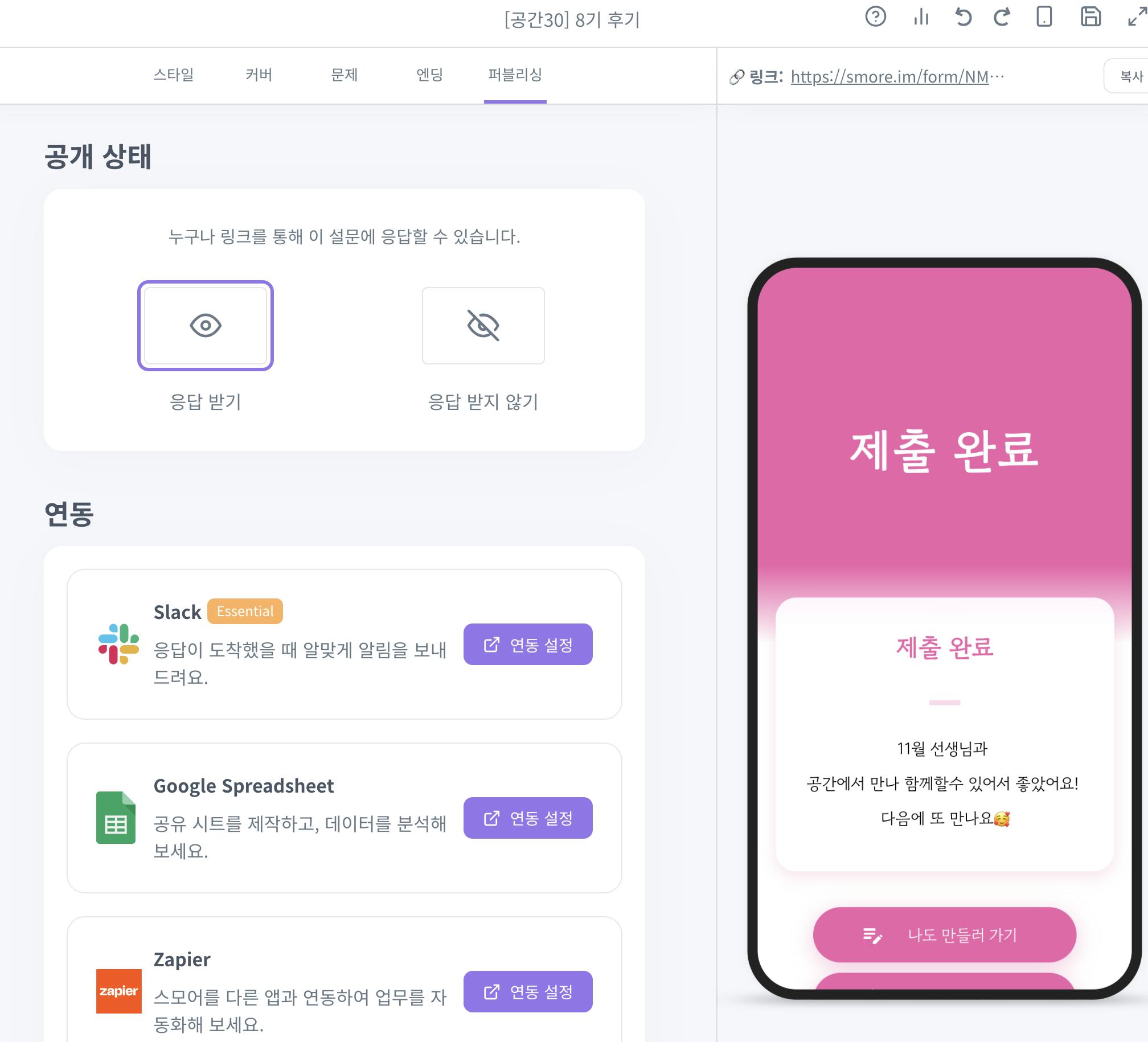 저는 일단.. 간단한 후기 설문에서는 smore를 예쁘게 쓸 것 같습니다..