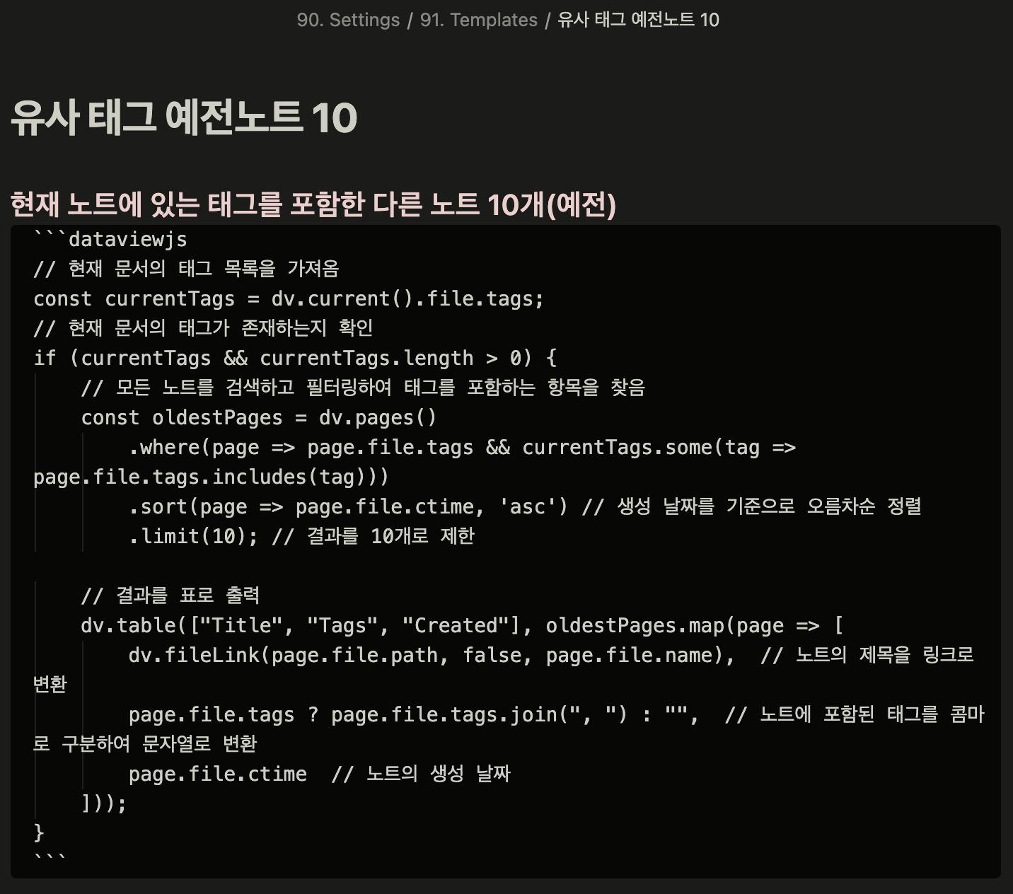 이런 태그를 사용했던 다른 노트는 없었을까? 라는 궁금증이 들었다면 이를 자동화할 수 있다.