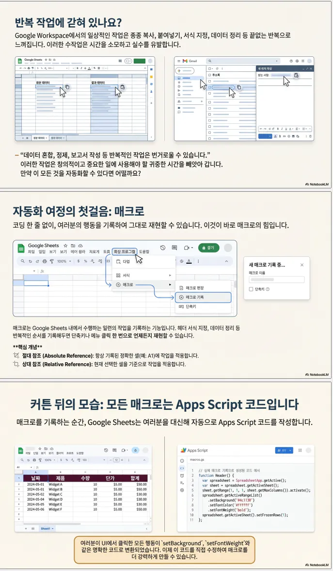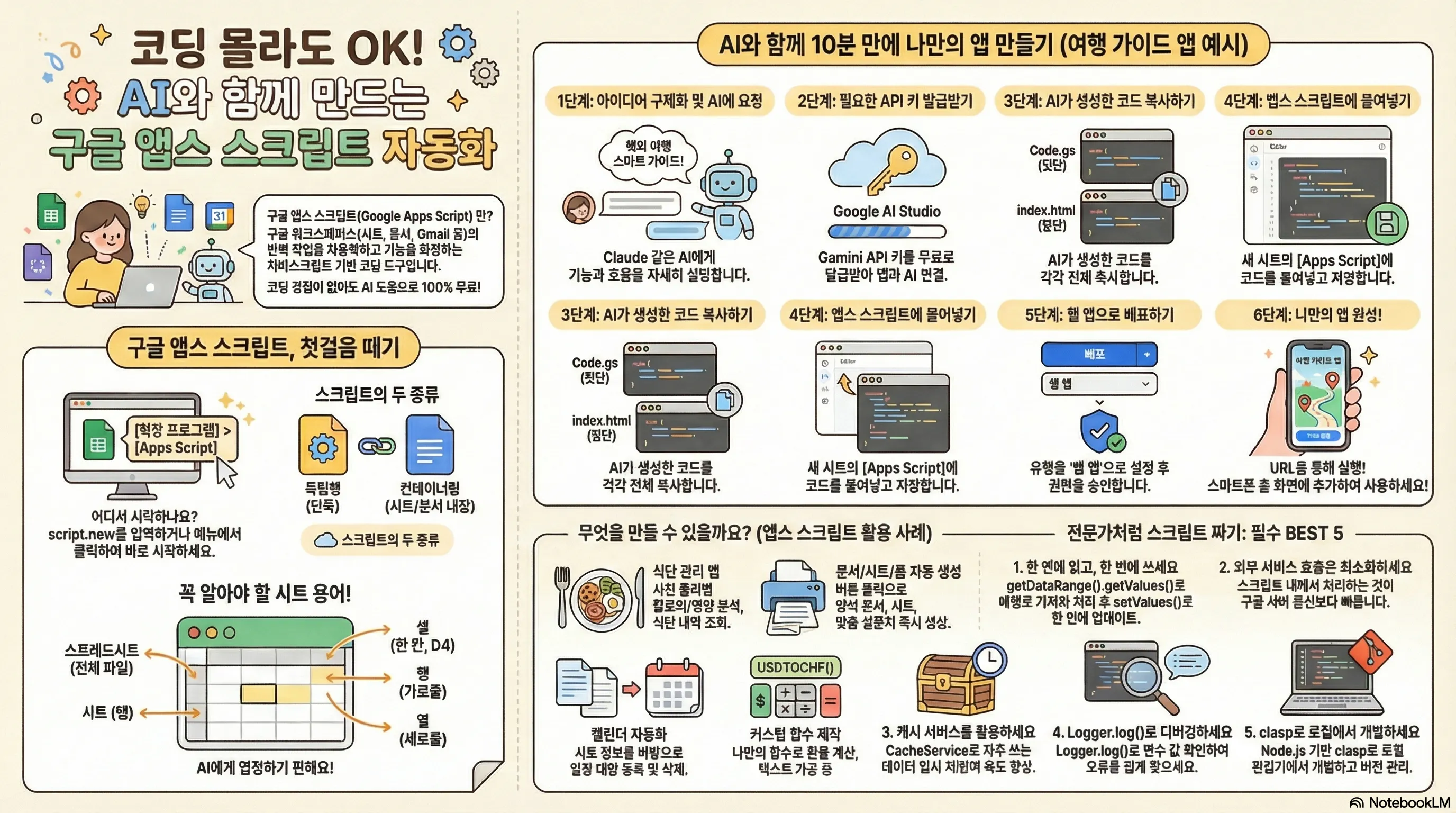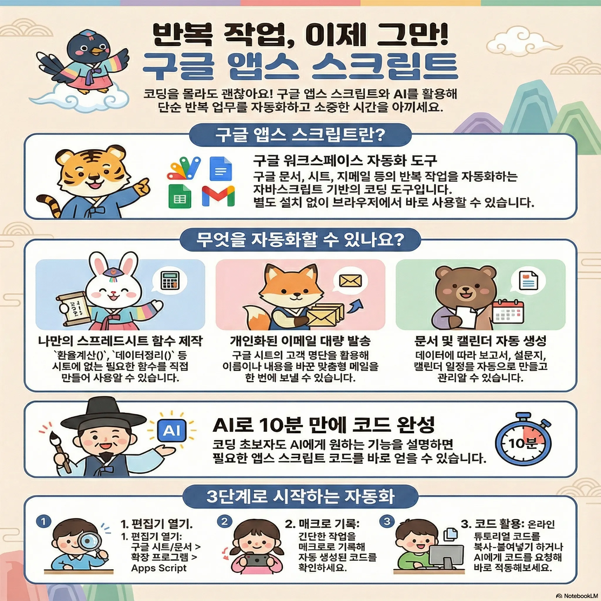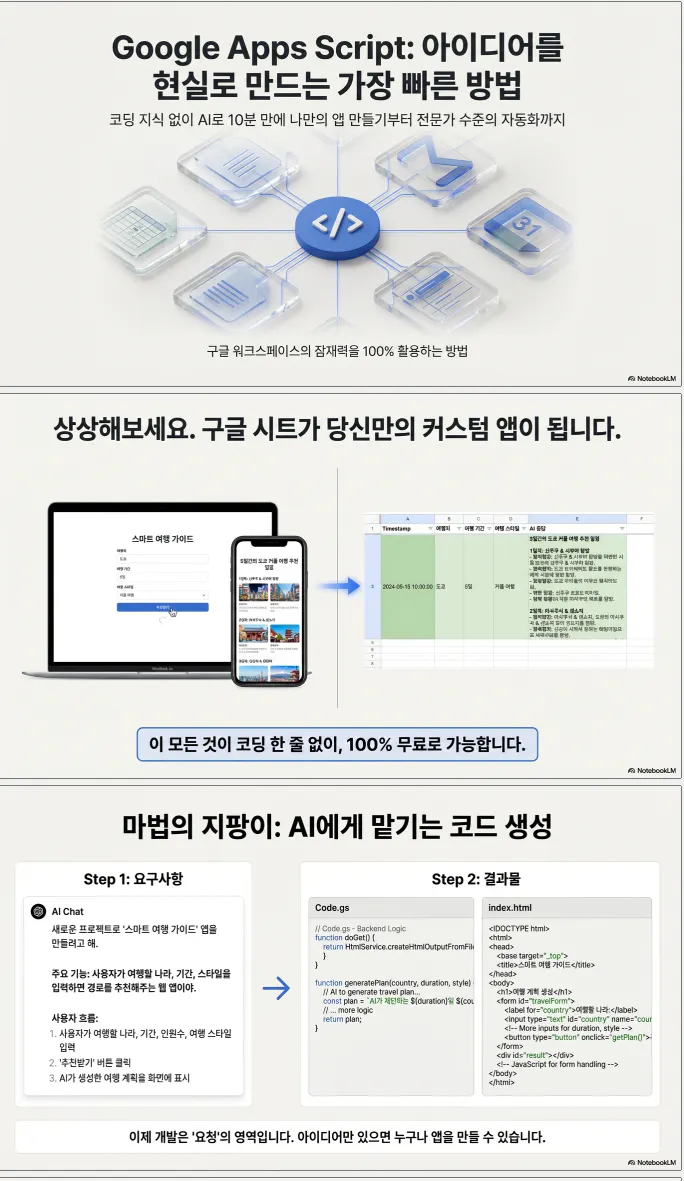 노트북 LM에서 제공되는 프롬프트에 맞춰 다양한 내용을 실험했어요. 예를 들어, 구글 워크스페이스 관련 글을 작성할 때는 "구글 앱 스크립트의 자동화 기능을 활용하는 팁을 5가지 알려줘!"와 같은 구체적인 요청을 넣었죠. 그러자 AI가 아주 실용적인 정보를 제공했어요!