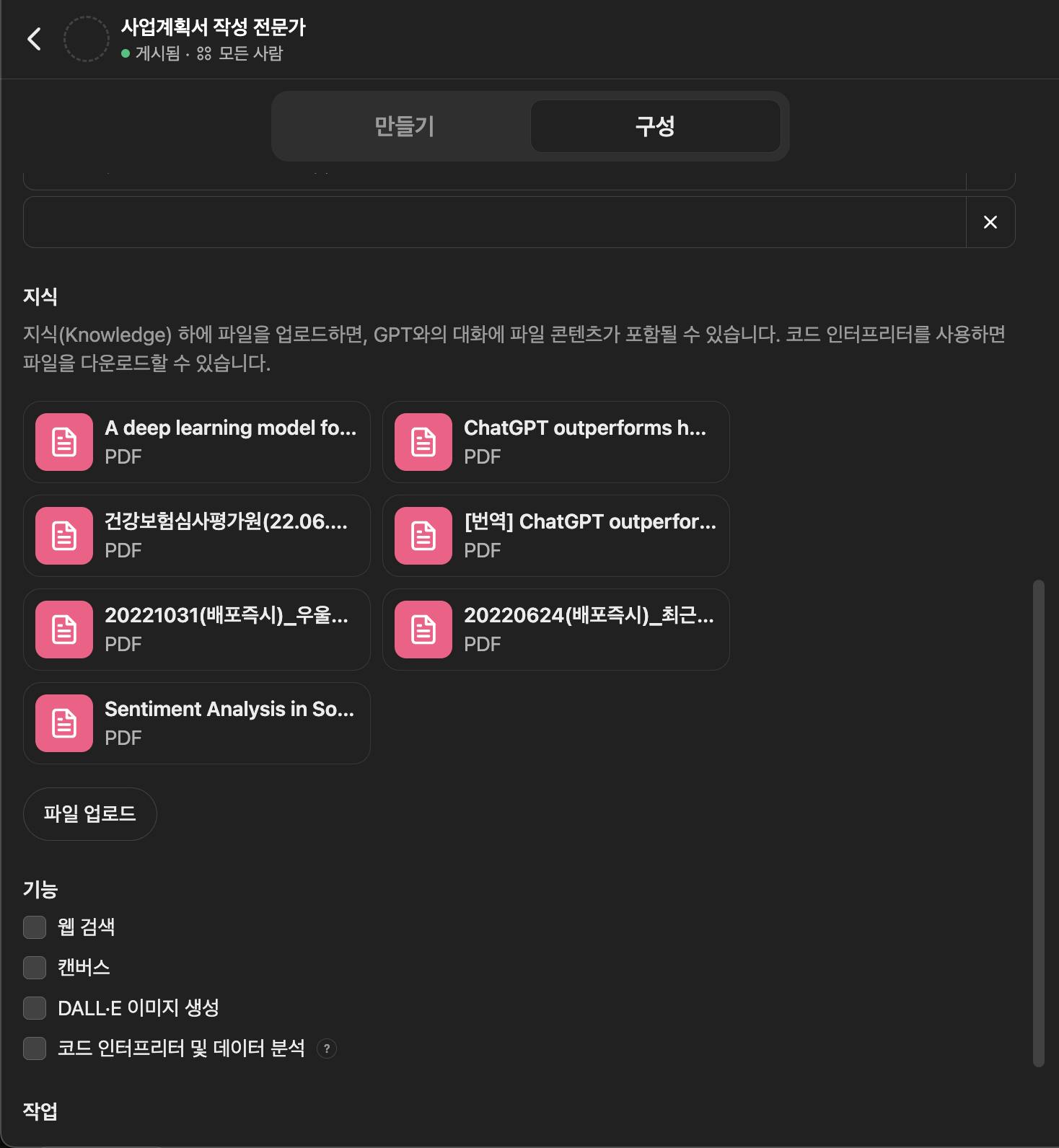 ChatGPT 유료 계정에서 MyGPT 제작함