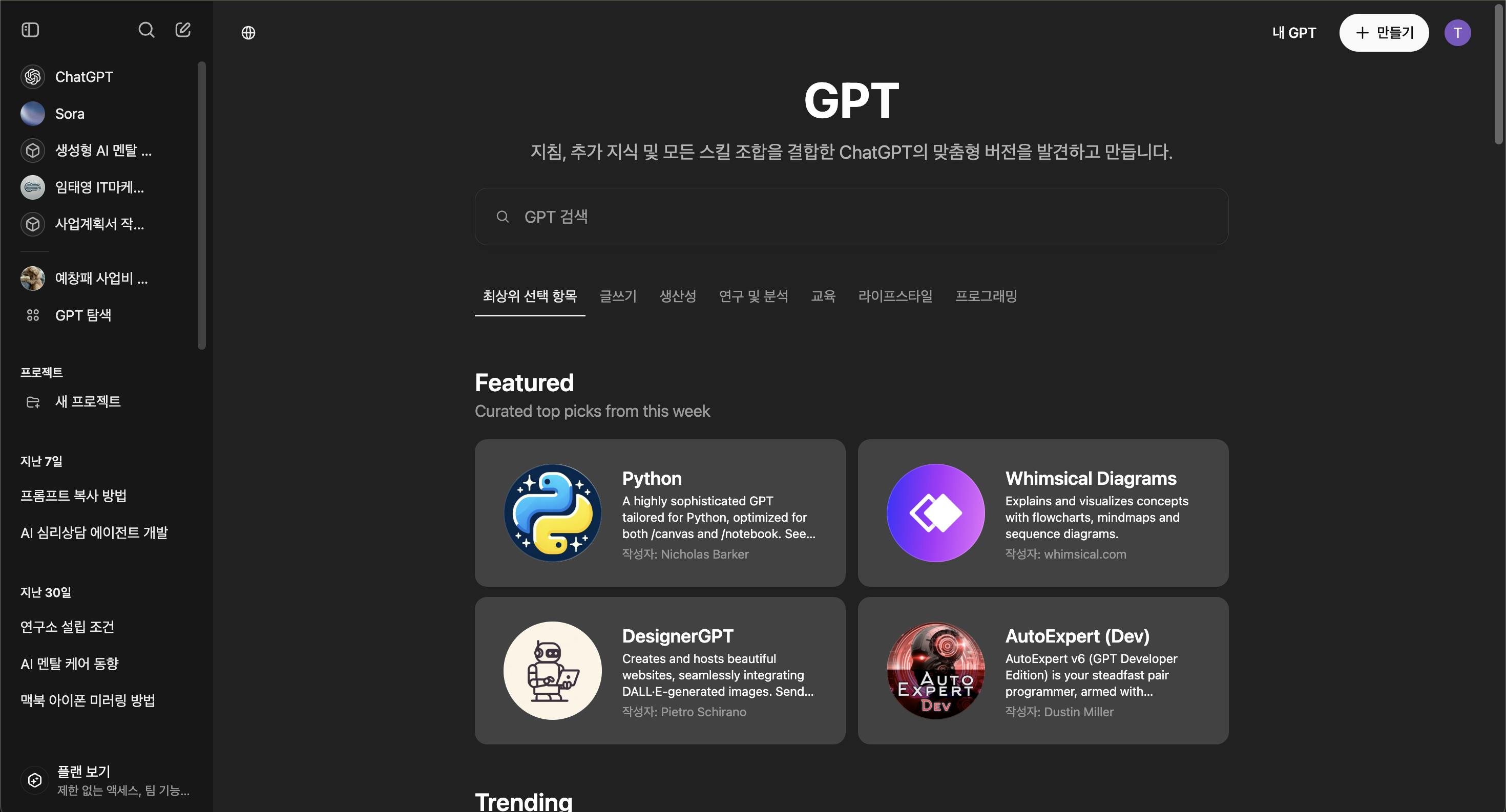 - 내가 만든 GPTs 사용해보기