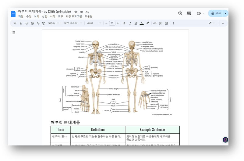 저는 '해부학 뼈대계통'이라는 키워드를 넣어봤습니다.