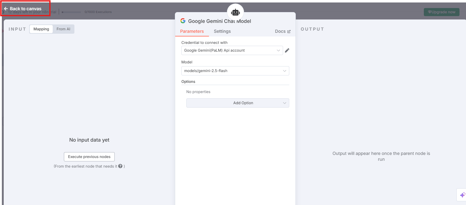 AI Agent 지능으로 제미니를 달아준 노드를 더블클릭하세염!