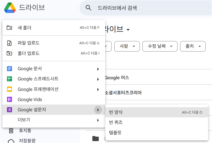 (1) 검색창에 '구글 설문' 입력 하여 구글폼 사이트 접속