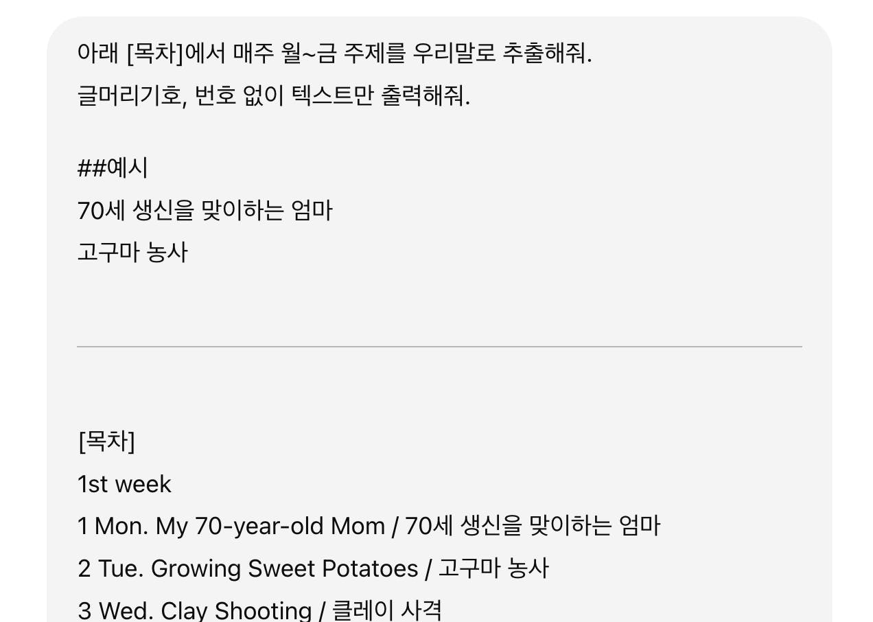 표 삭제 후 맨 처음 지피티에게 받아두었던 제목 목록을 넣었습니다.