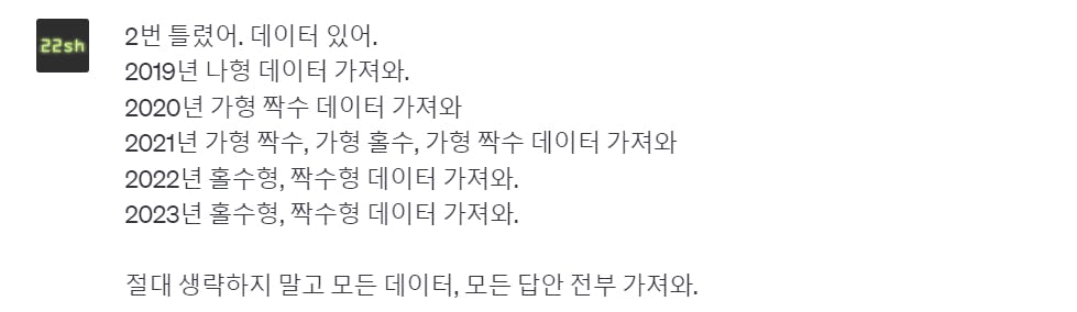 시키지도 않은 예시 데이터로 표를 채우는 것부터 이상함을 느낌