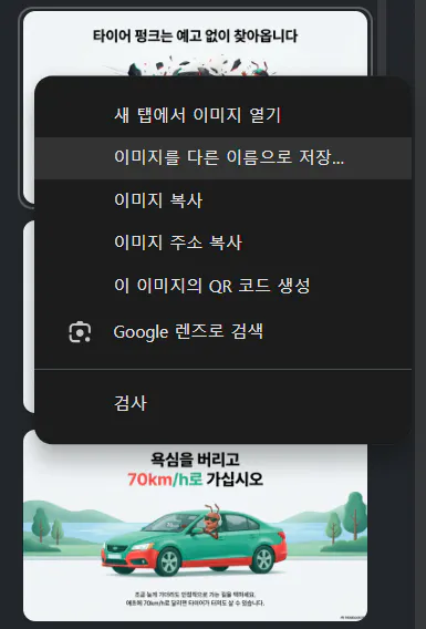 8. 이제 마음에 드는 이미지 위에 마우스 우 클릭 "이미지를 다른 이름으로 저장" 하시고