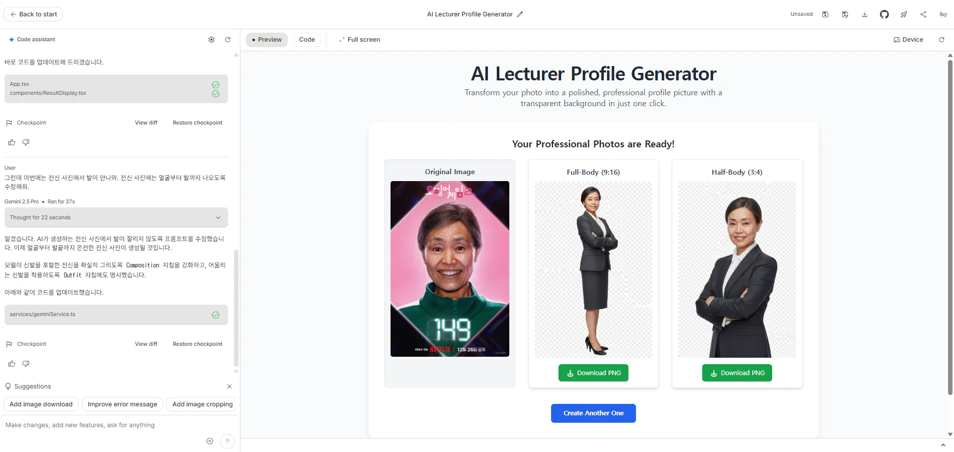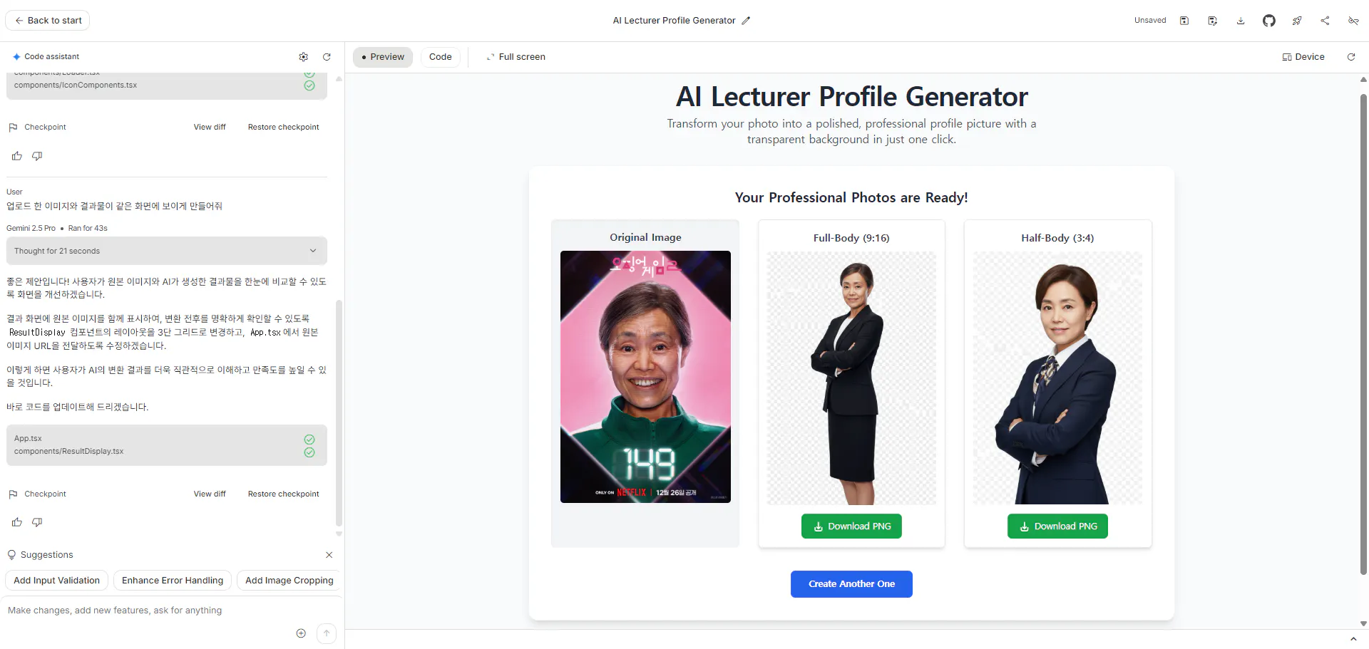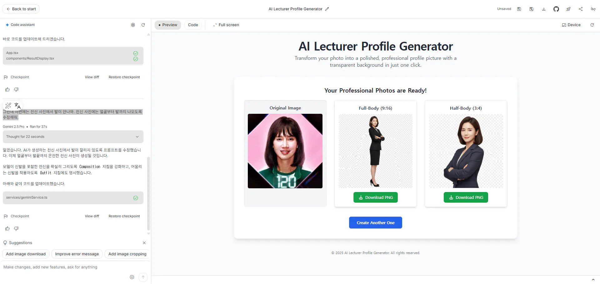 강사 사진을 업로드 하면 강사 프로필에 사용할 사진으로 바꿔주는 앱을 나노바나나를 활용하여 만들어줘.