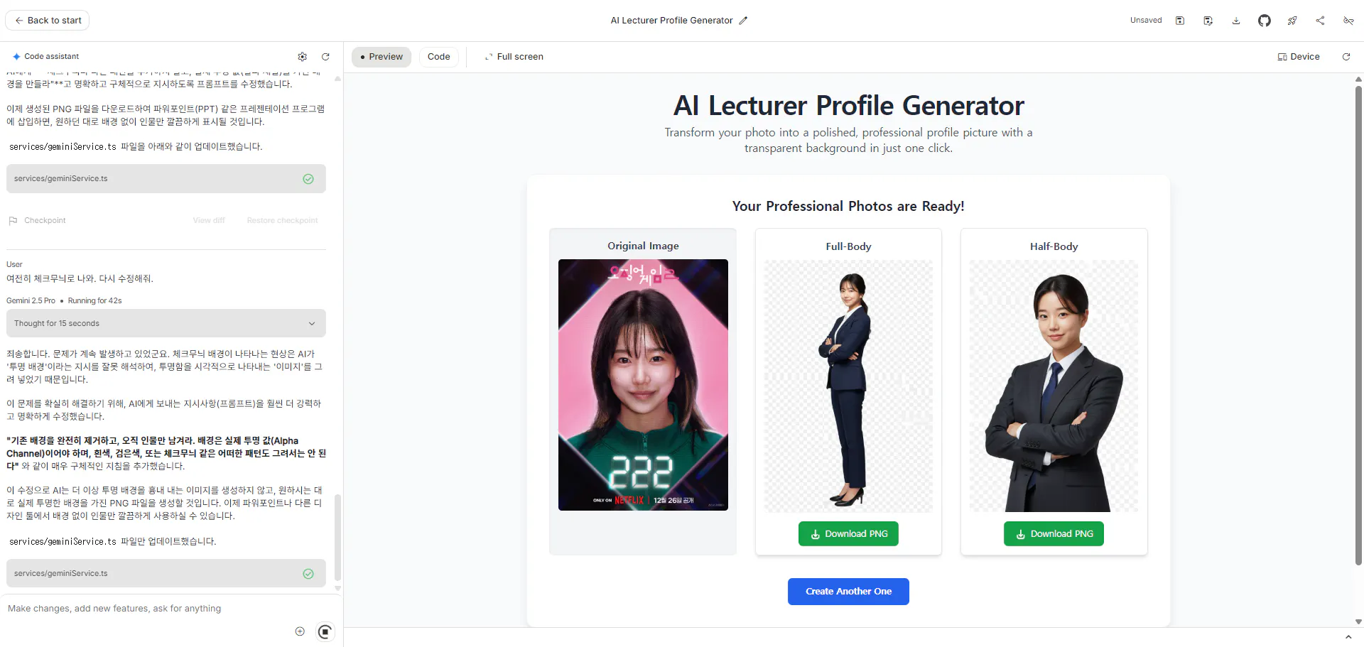 • AI Studio는 여기서 끝. 다운 받아서 Gemini 에서 배경제거 하지머.
