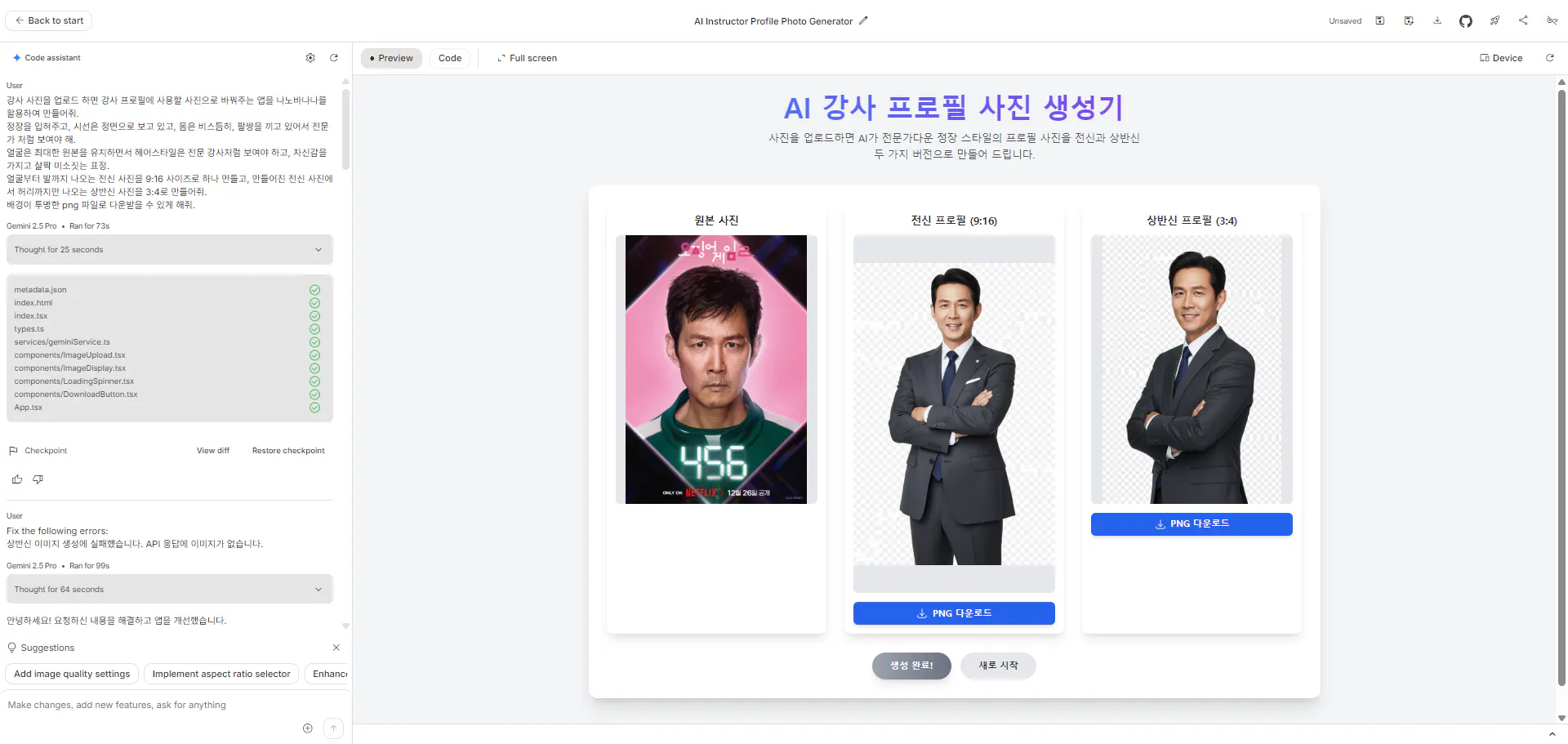 • 다시 AI Studio → 여기서 그냥 끝을 보자